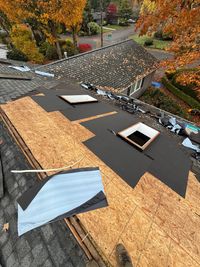 A roof replacement is tearing off your old roofing materials down to the decking and installing all-new roofing components (underlayment, shingles, etc.).